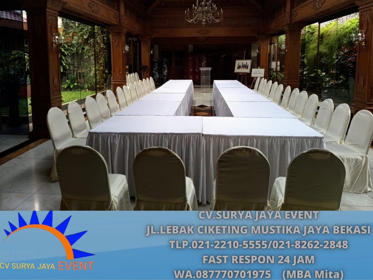 Untuk meja juga dapat disewa lengkap dengan cover dan dekorasi lainnya. Selain itu, direkomendasikan juga untuk berbagai kebutuhan juga acara-acara.